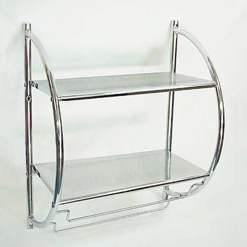 Ripiano portasciugamani a parete in metallo a doppio livello a forma di D per il bagno per hotel e appartamenti ad angolo montato